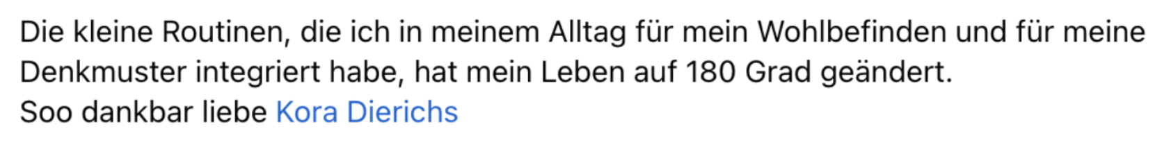 Du willst dich täglich gut, angekommen und authentisch fühlen, ohne vorher zig Coaching-Tools nutzen zu müssen. Geschehnisse werfen dich nicht aus der Bahn, denn deine Grundstimmung ist glücklich und königlich.